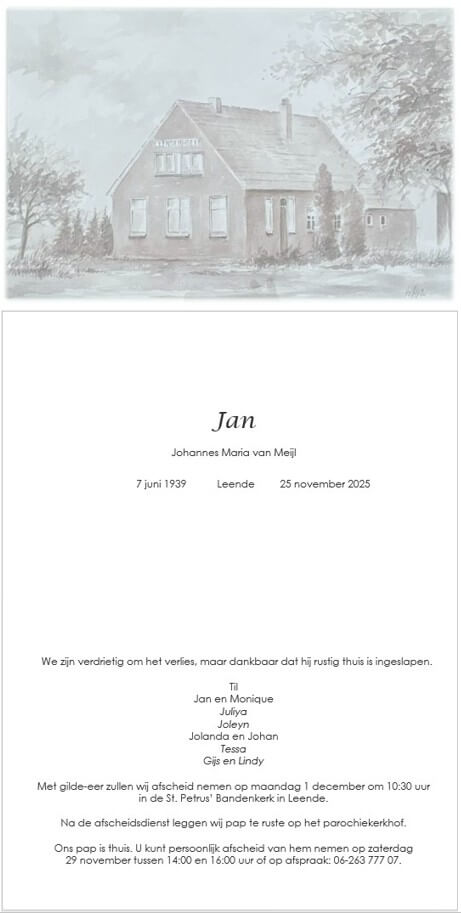 Gecondoleerd en sterkte met het verlies van Jan van meyl
